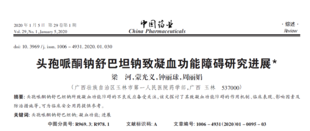 近年來,頭孢哌酮舒巴坦致凝血功能異常的報(bào)道屢見不鮮,國家藥品監(jiān)督管理局2019 年第13號(hào)公告要求對(duì)含頭孢哌酮藥品說明書進(jìn)行修訂,不良反應(yīng)項(xiàng)下增加血小板減少、低凝血酶原血癥、凝血障礙、出血內(nèi)容,注意事項(xiàng)項(xiàng)下開頭部分加入有關(guān)凝血障礙及出血風(fēng)險(xiǎn)的警告項(xiàng)。另外,頭孢哌酮舒巴坦所致凝血功能障礙的影響因素與患者的年齡、營養(yǎng)狀況、伴有肝腎功能不全,以及藥物劑量和聯(lián)合用藥等有關(guān)。