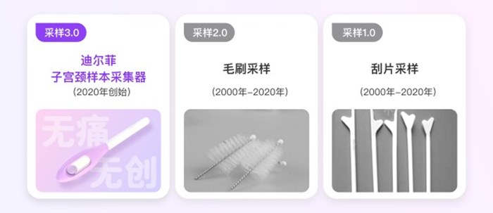 而且,迪爾菲兩檢服務包提供的子宮頸樣本采集器為灌洗式采集器,此種采集器通過沖洗宮頸獲取宮頸脫落細胞,不會如毛刷采集器一般觸碰到宮頸表層,因而不會對宮頸造成損傷,采集過程更為安全、舒適。