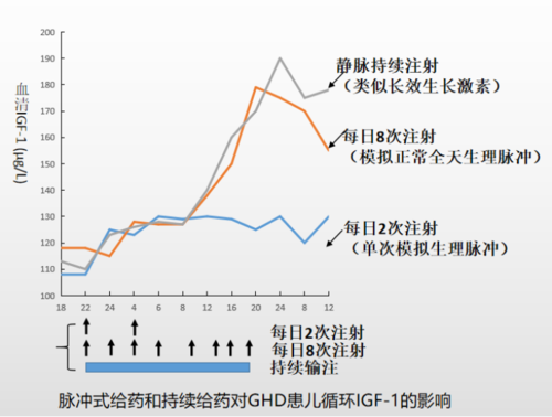 雖然注射頻率降低了,但長效水劑的療效卻一點沒打折,反而更優(yōu)秀了。因為人體自身生長激素的分泌并不是一成不變的直線,而是一條高低起伏的曲線,就像是一座座小山峰。即便短效生長激素每日都給藥一次,但也只能模擬數(shù)個小山峰中的一個,卻不能維持體內生長激素的曲線分泌。而穿上外套的長效生長激素通過排除速度的減慢完美地解決了這個問題,讓藥品更持久平穩(wěn)地發(fā)揮作用,從而更貼近體內天然生長激素分泌產(chǎn)生的生物學效應,療效自然有保障。