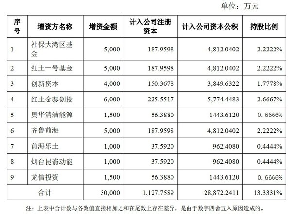 本次增資擴股各投資人出資認繳公司注冊資本、計入公司資本公積、持股比例如下: