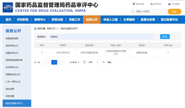 恩凱賽藥通用型基因修飾NK細(xì)胞藥物獲中國CDE臨床試驗(yàn)許可 官網(wǎng)截圖