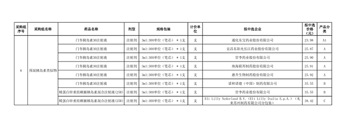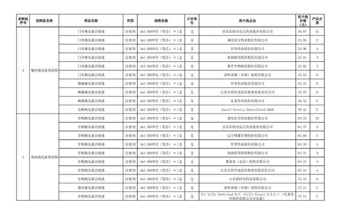 附件:全國藥品集中采購(胰島素專項接續(xù))擬中選結(jié)果表