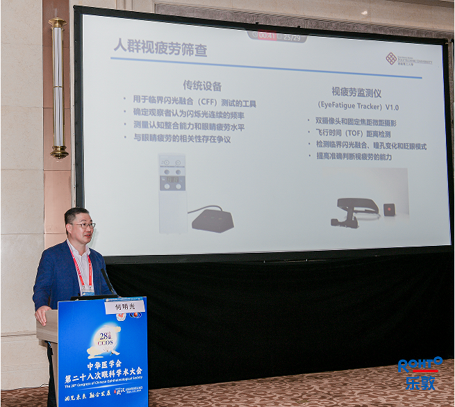 時近一年,樂敦在不斷加強(qiáng)公眾眼健康教育的同時,持續(xù)視疲勞標(biāo)準(zhǔn)化診療研究耕耘。值此CCOS大會,香港理工大學(xué)眼科視光學(xué)院科研眼科講座教授兼香港理工大學(xué)-樂敦護(hù)眼創(chuàng)新研究中心總監(jiān)何明光教授,帶領(lǐng)團(tuán)隊發(fā)表《視疲勞的客觀測量的開發(fā)和驗證》研究報告,公開最新研究成果——視疲勞監(jiān)測儀V1.0。