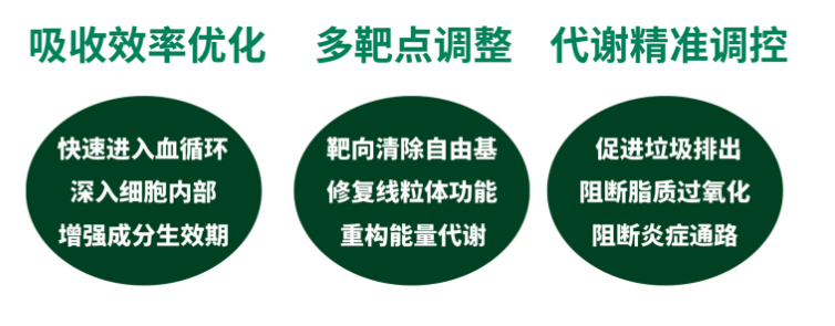 功能化多酚:強(qiáng)化多酚的抗氧化抗炎功能,同時去除其肝腎刺激成分,使之可以支持長期使用。