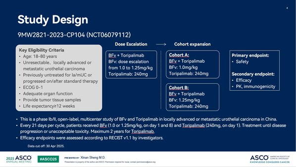 5 月 30 日 - 6 月 3 日在美國(guó)芝加哥舉辦的 2025 美國(guó)臨床腫瘤學(xué)會(huì)年會(huì)(ASCO)上,9MW2821 與特瑞普利單抗聯(lián)合用于治療局部晚期或轉(zhuǎn)移性尿路上皮癌(la/mUc)患者的 Ib/II 期臨床研究結(jié)果由北京大學(xué)腫瘤醫(yī)院泌尿腫瘤內(nèi)科主任醫(yī)師盛錫楠教授代表研究團(tuán)隊(duì)進(jìn)行了報(bào)告。9MW2821 聯(lián)合特瑞普利單抗在尿路上皮癌展現(xiàn)了令人鼓舞的療效及良好的安全性。