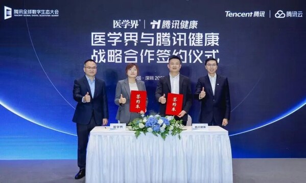 9月16日,騰訊全球數(shù)字生態(tài)大會期間,醫(yī)學(xué)界與騰訊健康正式簽署戰(zhàn)略合作協(xié)議。醫(yī)學(xué)界首席商務(wù)官毛及先生與騰訊健康總裁吳文達(dá)先生共同出席了簽約儀式。