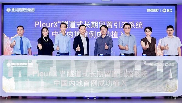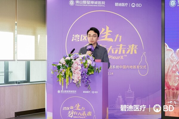 2025年10月14日,碧迪醫(yī)療、佛山復(fù)星禪誠(chéng)醫(yī)院(以下簡(jiǎn)稱佛山禪醫(yī))聯(lián)合舉辦了"灣區(qū)新生力,碧有大未來"GBA-PleurX首發(fā)儀式,正式宣告PleurX隧道式長(zhǎng)期留置引流(IPC)系統(tǒng)通過"港澳藥械通"政策首次落地中國(guó)內(nèi)地臨床應(yīng)用。該系統(tǒng)是一項(xiàng)專門針對(duì)復(fù)發(fā)性、惡性胸腔積液進(jìn)行長(zhǎng)期引流的創(chuàng)新方案,也是碧迪醫(yī)療首款通過港澳藥械通政策在內(nèi)地實(shí)現(xiàn)臨床應(yīng)用的創(chuàng)新產(chǎn)品,為深受復(fù)發(fā)性、惡性胸腔積液困擾的患者帶來了更安全的治療手段。在本次首發(fā)儀式上,佛山禪醫(yī)院長(zhǎng)趙曉東、佛山禪醫(yī)副院長(zhǎng)梁舒鎮(zhèn)、碧迪醫(yī)療中國(guó)區(qū)腫瘤診斷事業(yè)部副總裁姚家偉、華潤(rùn)佛山醫(yī)藥總經(jīng)理蒲力,受邀出席,并發(fā)表致辭。