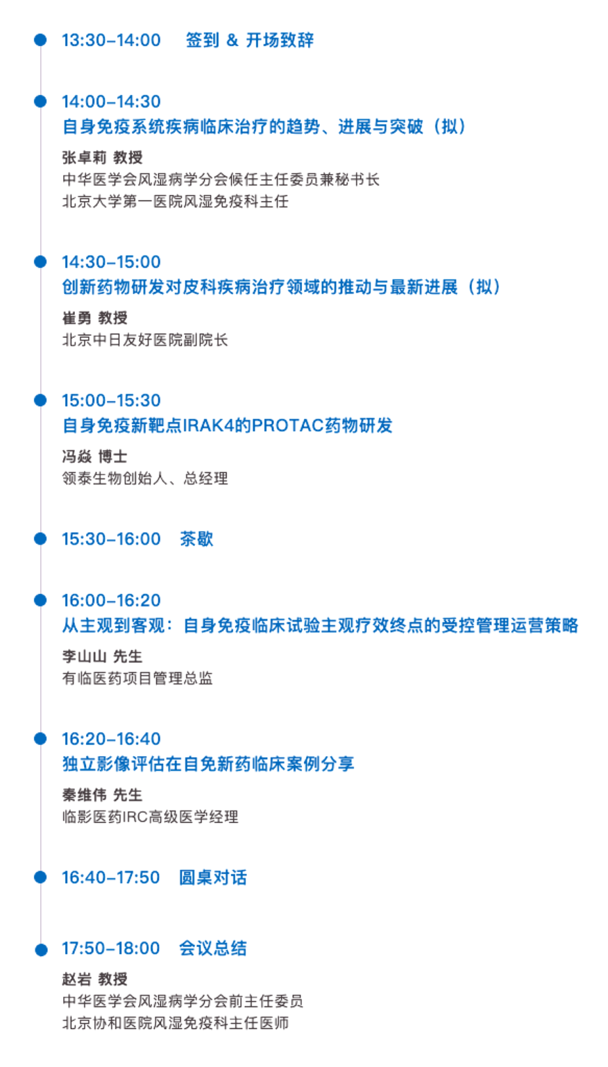 我們誠摯邀請致力于自身免疫領(lǐng)域新藥研發(fā)的業(yè)界同仁參與本次沙龍,期待與您相聚北京,共話自身免疫新藥研發(fā)的未來路徑,助力中國創(chuàng)新藥物臨床研究的高質(zhì)量發(fā)展。