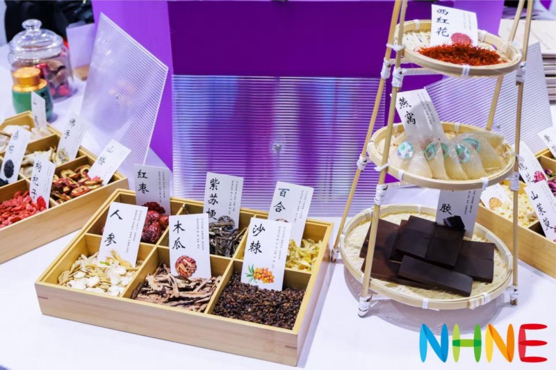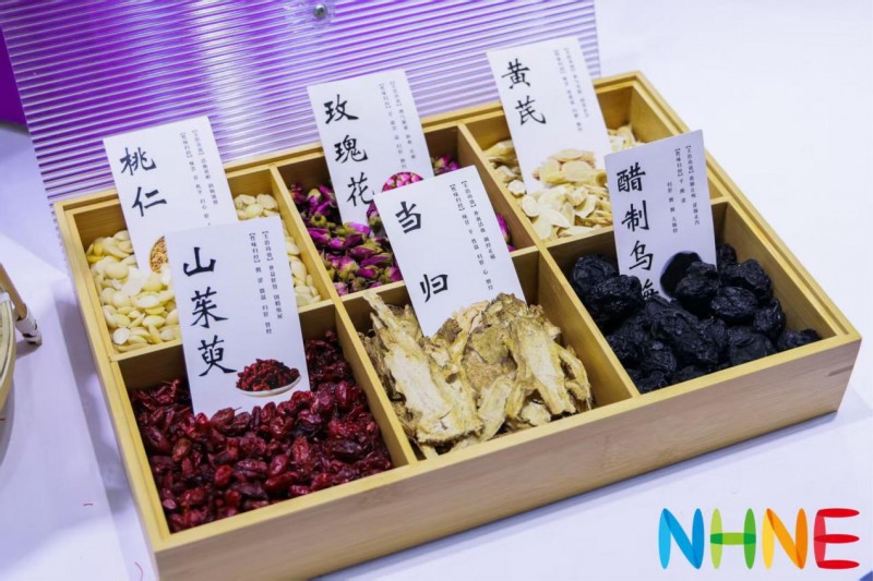 在展位中央的 “道地藥材展示區(qū)”,一組透明六宮格展柜格外引人注目——每個(gè)展格內(nèi)都整齊擺放著一種藥食同源膏方道地原材,搭配清晰的文字說明,詳細(xì)介紹原料的性味歸經(jīng)、主治功效及在膏方中的作用。展柜內(nèi),產(chǎn)自甘肅的黃芪質(zhì)地柔韌、色澤黃亮,來自寧夏的枸杞顆粒飽滿、果肉厚實(shí),東阿阿膠塊質(zhì)地細(xì)膩、斷面光亮,還有當(dāng)歸、天麻、佛手、桃仁、百合、桑椹等十余種優(yōu)質(zhì)藥材,均經(jīng)過九楚膏滋原料篩選團(tuán)隊(duì)的層層把關(guān)。