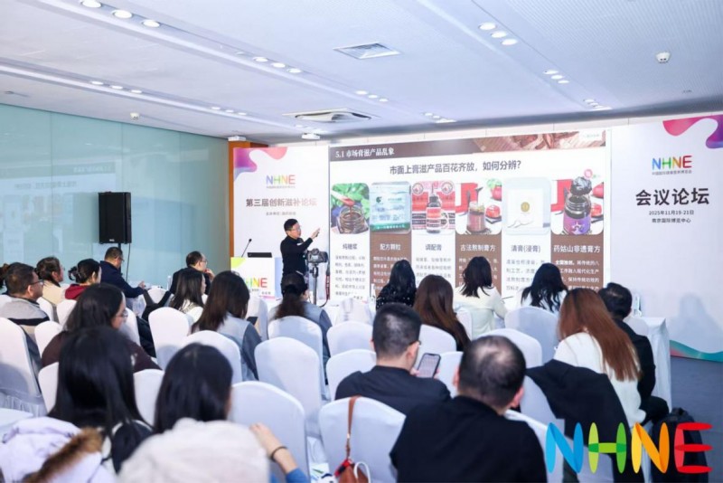 除了產(chǎn)品與體驗(yàn),九楚膏滋還為展會(huì)帶來了一場(chǎng)極具價(jià)值的專業(yè)分享。11月19日下午,九楚膏滋膏方工廠創(chuàng)始人&產(chǎn)品經(jīng)理李英衛(wèi)先生,受邀在本次大會(huì)的第三屆創(chuàng)新滋補(bǔ)論壇上發(fā)表《藥食同源膏方的開發(fā)與應(yīng)用場(chǎng)景》主題演講。