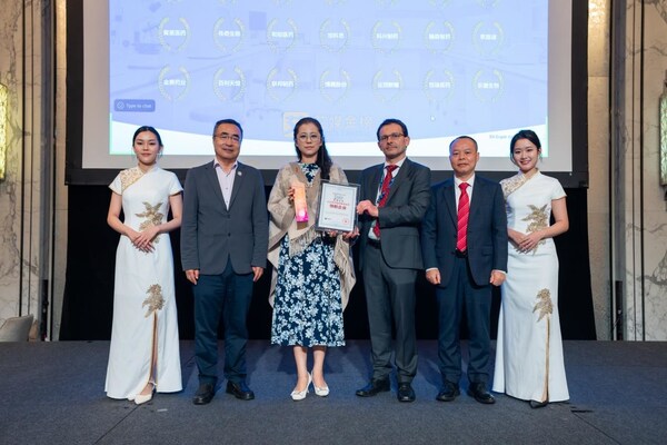 左三為金賽藥業(yè)新加坡子公司代表現(xiàn)場(chǎng)領(lǐng)獎(jiǎng)