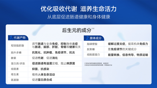 如何更好的維護(hù)腸道菌群平衡?在微生態(tài)領(lǐng)域,后生元是當(dāng)下的科研熱點(diǎn)。后生元是有益菌滅活后的菌體成分及其代謝產(chǎn)物統(tǒng)稱,包含短鏈脂肪酸、維生素、氨基酸等。