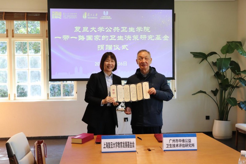 2025年11月26日上午在復(fù)旦大學(xué)邯鄲校區(qū)校友館篤志廳隆重舉行“一帶一路國家的衛(wèi)生決策研究基金”捐贈簽約儀式,復(fù)旦大學(xué)對外聯(lián)絡(luò)與發(fā)展處處長、上海復(fù)旦大學(xué)教育發(fā)展基金會秘書長劉莉與中維公益理事長鞠新霞代表雙方簽署了捐贈協(xié)議。