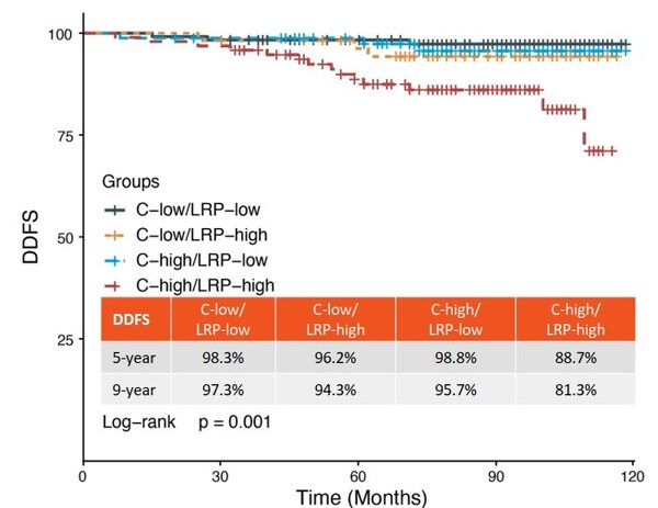? LRP評(píng)分低危人群占比55%,9年DDFS達(dá)到96.2%,與LRP高危人群(9年DDFS達(dá)到87.0%)具有顯著的統(tǒng)計(jì)學(xué)差異(HR=0.28;p=0.0021);