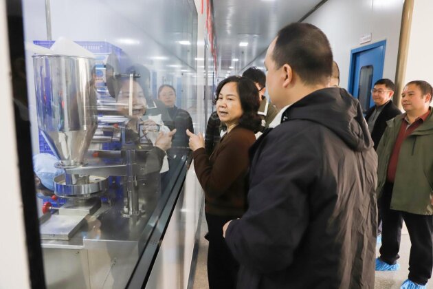 在公司領(lǐng)導陳才安、梁愛春、凌佩玲的陪同下,調(diào)研團隊先后深入制劑車間、產(chǎn)品展廳等核心區(qū)域,全方位考察企業(yè)生產(chǎn)運營與發(fā)展布局。在現(xiàn)代化制劑車間,調(diào)研團隊近距離觀摩藥品生產(chǎn)全流程,詳細詢問質(zhì)量管控標準、工藝創(chuàng)新難點及產(chǎn)能提升舉措,對公司嚴謹規(guī)范的全鏈條生產(chǎn)管理體系給予高度認可。在產(chǎn)品展廳,通過實物展示、功效講解與互動交流,調(diào)研團隊深入了解雙蟻祛濕通絡(luò)膠囊、雙蟻復方感冒靈顆粒、復方金銀花顆粒等核心產(chǎn)品的性能與療效,對公司深耕抗感治咳和風濕類藥物領(lǐng)域、傳承創(chuàng)新壯醫(yī)藥文化的發(fā)展定位形成直觀認知。