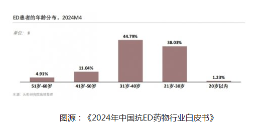 頭豹研究院數(shù)據(jù)顯示,我國ED患病率已達49.69%,31—40歲人群高發(fā)率。然而,與需求形成鮮明對比的是,長期規(guī)范治療率不足三成。價格、療效信任與購藥隱私,構成了壓制市場釋放的“三重閘門”。