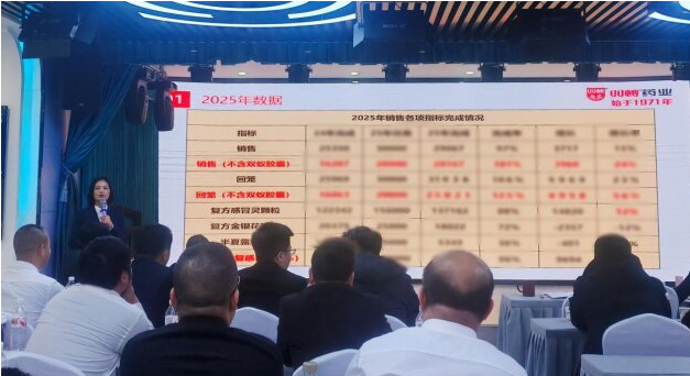 隨后,副總經(jīng)理梁立艷作2025年經(jīng)營(yíng)分析與2026年?duì)I銷(xiāo)策略解讀報(bào)告,用詳實(shí)的數(shù)據(jù)全面復(fù)盤(pán)2025年?duì)I銷(xiāo)工作亮點(diǎn)。她提到,2025年雙蟻藥業(yè)營(yíng)銷(xiāo)業(yè)績(jī)?cè)賱?chuàng)新高,銷(xiāo)售與回籠實(shí)現(xiàn)“雙突破”,其中資金回籠同比增長(zhǎng)56%,銷(xiāo)售同比增長(zhǎng)25%,增長(zhǎng)勢(shì)頭強(qiáng)勁。從區(qū)域表現(xiàn)來(lái)看,貴州、四川、云南、河南、重慶等省份表現(xiàn)突出,尤其是貴州市場(chǎng),成為唯一一個(gè)圓滿完成銷(xiāo)售、回籠及單品種任務(wù)的省份,為全國(guó)市場(chǎng)樹(shù)立了標(biāo)桿。